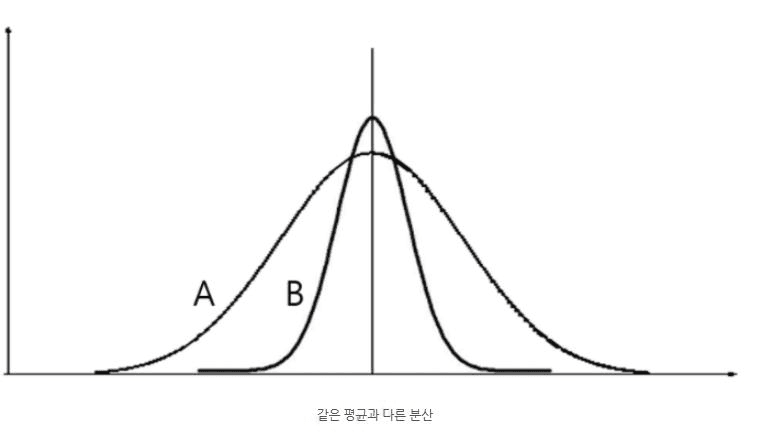 | 작음 | 데이터가 평균 주변에 모여 있음 | 뾰족하고 좁음 |