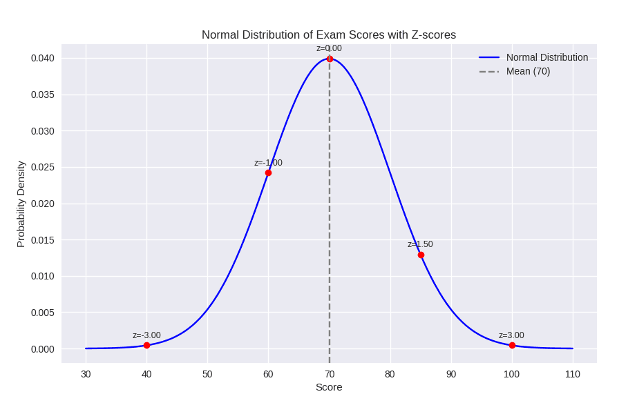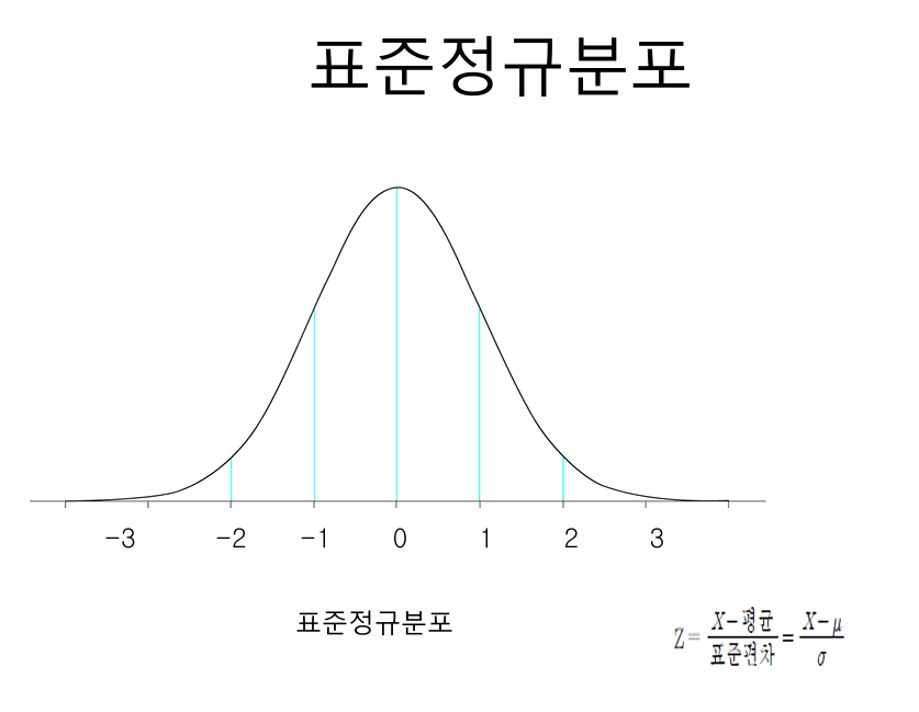 – Z값은 특정 데이터가 평균으로부터 얼마나 떨어져 있는지를 표준편차 단위로 나타낸 값