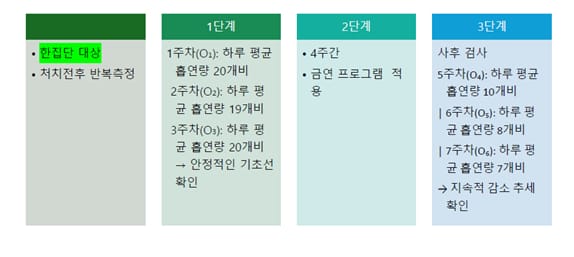 | 추가조치 | 사전집중력테스트를미리실시하여두반의초기수준확인(공변량분석) |