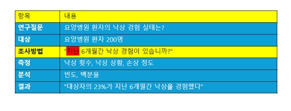 | 현상 파악(어떤가 | 외적 타당도 | 조사연구, 관찰연구 |