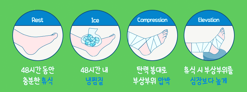 ✅ 요약: R(안정) → I(냉찜질) → C(압박) → E(거상)
