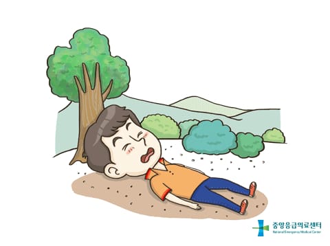 환자를 눕혀서 안정시킨 뒤 움직이지 않게 한다.