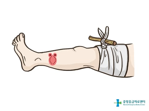 물린곳에서 5~10cm 위를 적당한 압력으로 묶어 독이 퍼지지않게 한다.
