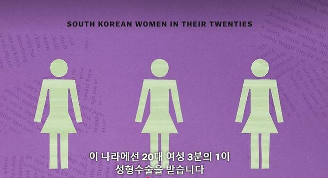 국제미용성형수술협회 ISAPS 통계에 따르면 한국은 오랫동안 인구 대비 성형 수술 빈도 세계 상위권을 기록해 왔다. 여성학자 태희원은 “한국 사회에서 성형은 이미 일상화되고 정상화되었다”고 말한다.
