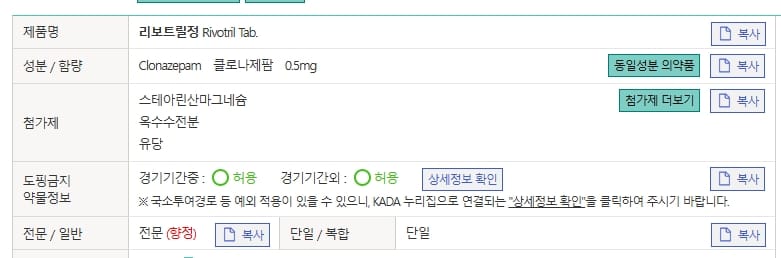 리보트릴이란 약으로 불안이나, 공황 등에 흔하게 쓰는 약이긴 하나, 자세히 보면 “향정”으로 추가로 표시가 되어있다.