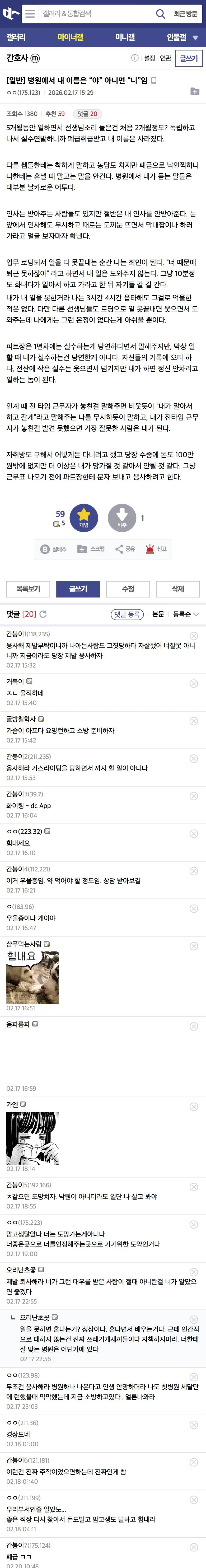 병원에서 내 이름은 “야” 아니면 “니”임 (간호사 태움) 차례 숨기기 병원에서 내 이름은 “야” 아니면 “니”임 (간호사 태움) 관련 응사를 했다 (간호사 태움의 현실)3일만에 태움 때문에 무단퇴사한 간호사병원에서 내 이름은 “야” 아니면 “니”임 (간호사 태움)AI-900 시험 나오는 것들 (틀리기 쉬운 개념들)챗GPT 덕분에 실명위기에서 간신히 벗어난 사람(유머) “자 환자분 아프면 말하세요~”대한민국 성형수술의 역사 Post Views: 32관련태그:간호사 태움태움이전AI-900 시험 나오는 것들 (틀리기 쉬운 개념들)