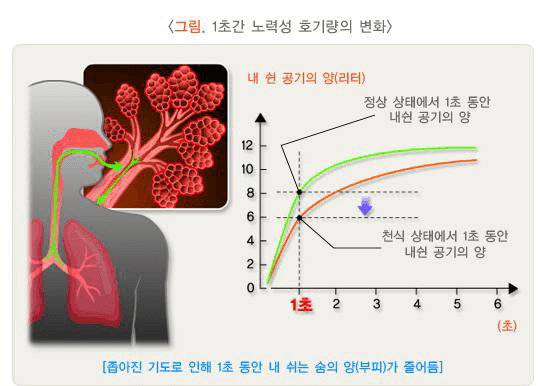 – 폐쇄성(obstructive)폐질환과 억제성(restrictive) 폐질환을 구분 : 폐쇄성 경우 호기시간 연장