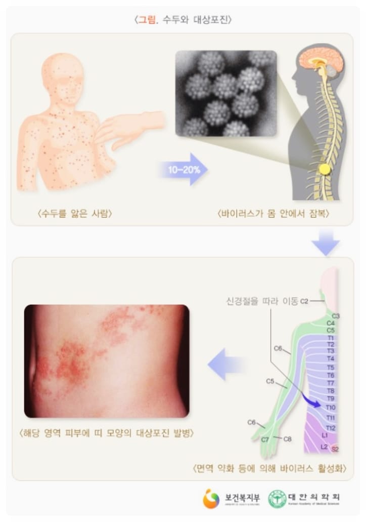 - 원인균: 수두-대상포진 바이러스(VZV)