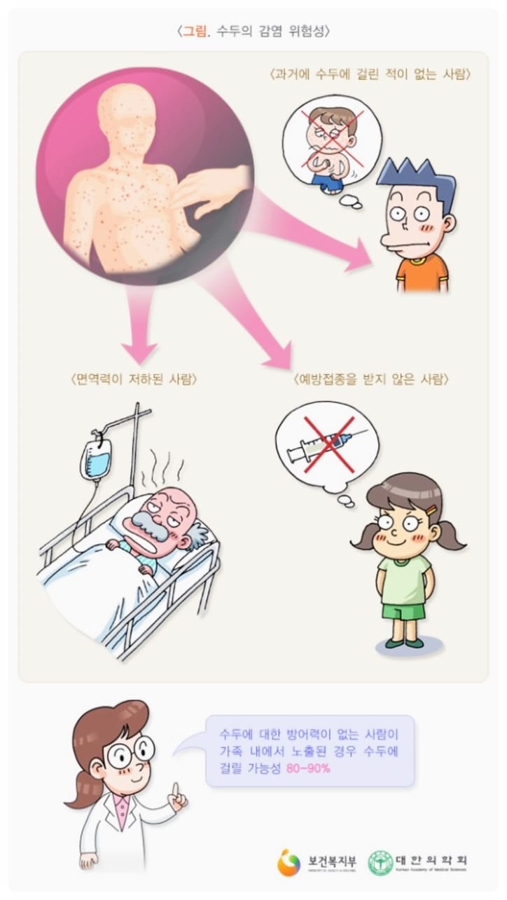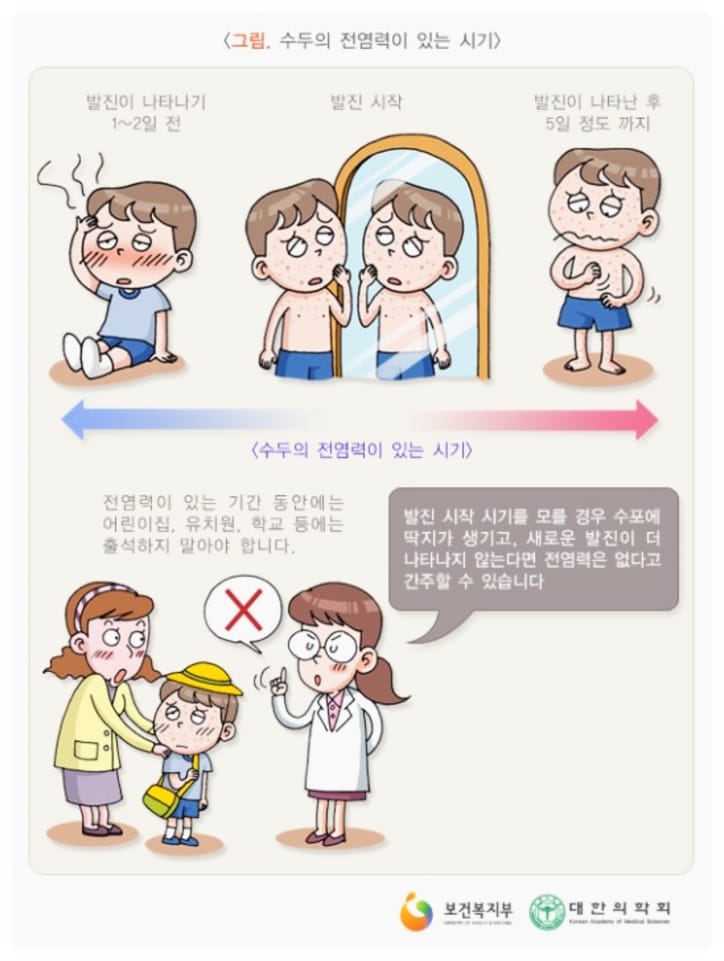 - 수두 예방접종이 가장 효과적 (12~15개월 1차, 4~6세 2차 접종)
