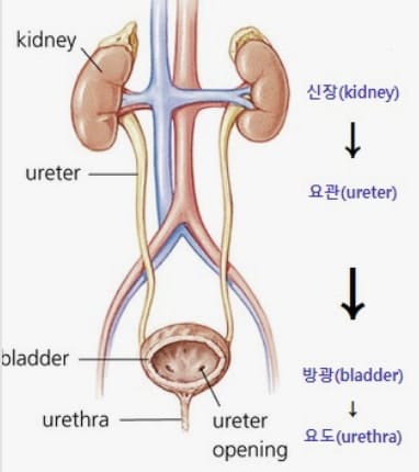 - 요도(urethra): 방광에서 체외로 소변을 배출하는 통로.