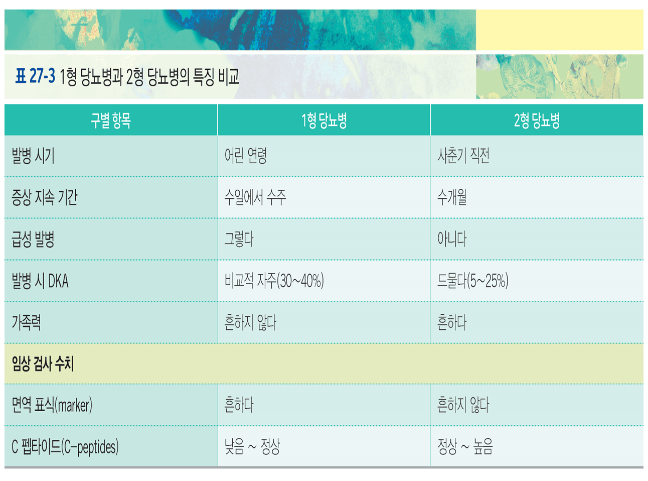 – 췌장 내 랑게르한스섬에서 인슐린을 적절히 생산해내지 못함(기 14,16,22)