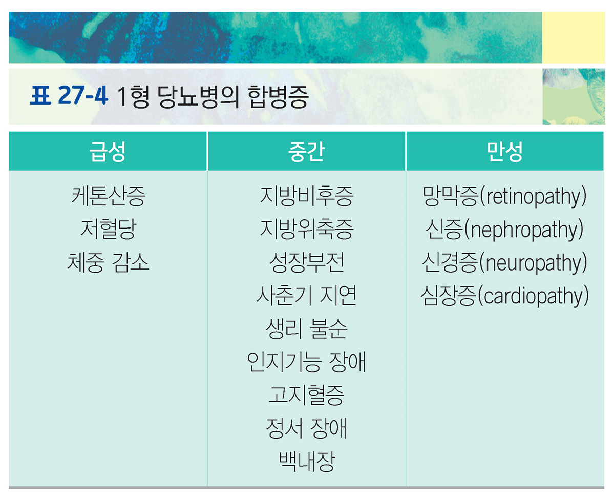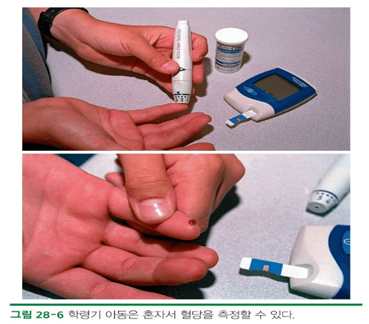 – 매일 인슐린주사, 혈당수치의 감시, 계획된 식이와 운동