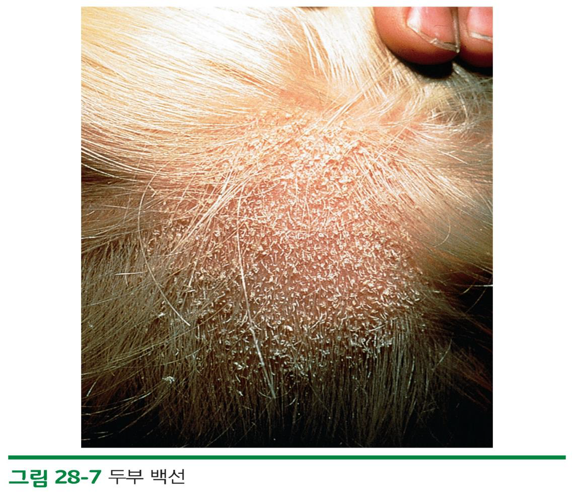 – 소양증 : 후두와 귀 뒤쪽에 국한되고 특히 밤에 증상이 심함