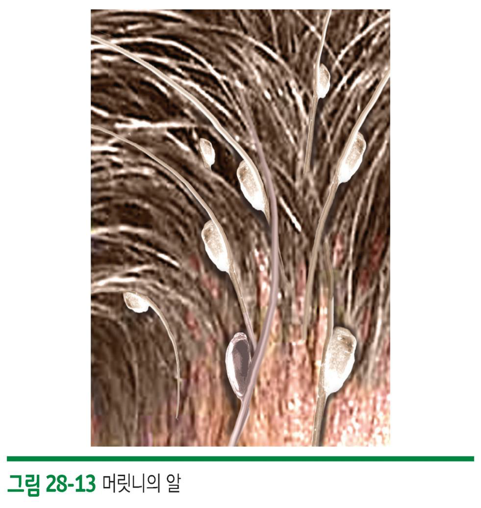 – 육안으로 관찰되는 머릿니, 서캐