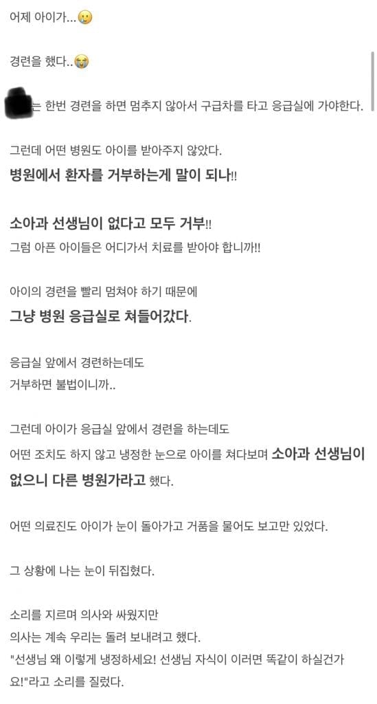 응급실 소아과의사가 없어서 진료거부 (부모입장 vs 의사입장) 차례 숨기기 응급실 소아과의사가 없어서 진료거부 (부모입장 vs 의사입장) 부모 입장 의사입장 관련 부모 입장의사입장(여성건강간호학) 난산 04(여성건강간호학) 난산 03(여성건강간호학) 난산 02(여성건강간호학) 난산 01(아동청소년간호학) 지중해 빈혈(thalassemia) Post Views: 590관련태그:응급실 소아과의사가 없어서 진료거부응급실 소아과의사가 없어서 진료거부 (부모입장 vs 의사입장)응급실 진료거부이전응급전문간호사 정의 실무경력인정기관 교육기관다음정신전문간호사 정의 실무경력인정기관 교육기관