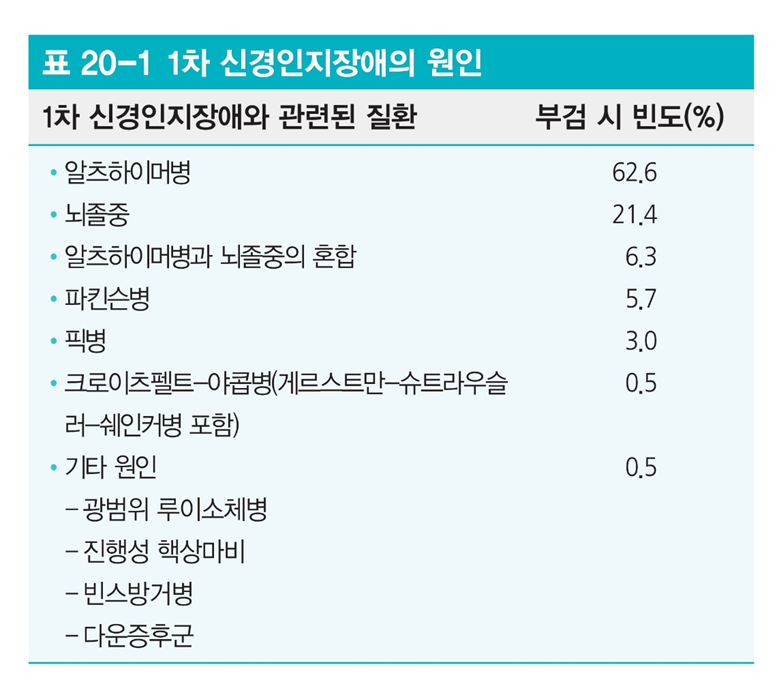 – 신경인지장애의 두 번째로 흔한 원인, 전체 신경인지장애 환자의 약 20%를 차지