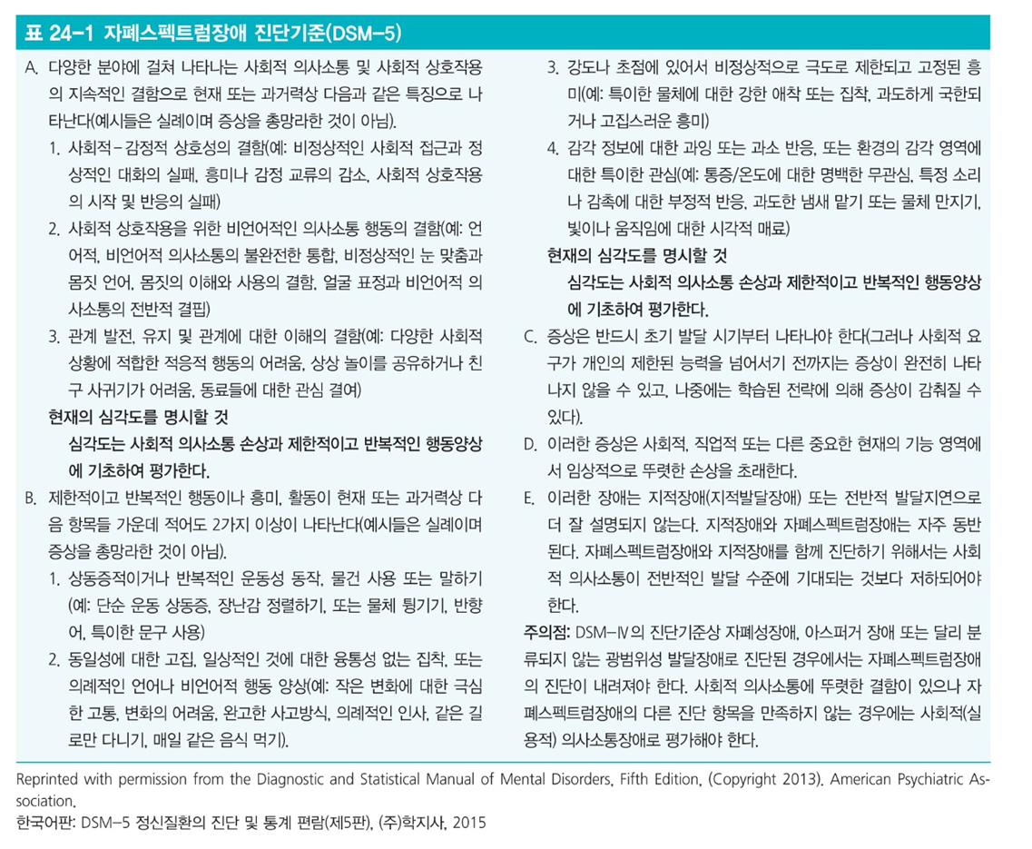 – 자폐스펙트럼장애(autism spectrum disorder)는 사 회적 의사소통장애와 제한적이고 반복적인 행동양상을 주로 나타내는 장애