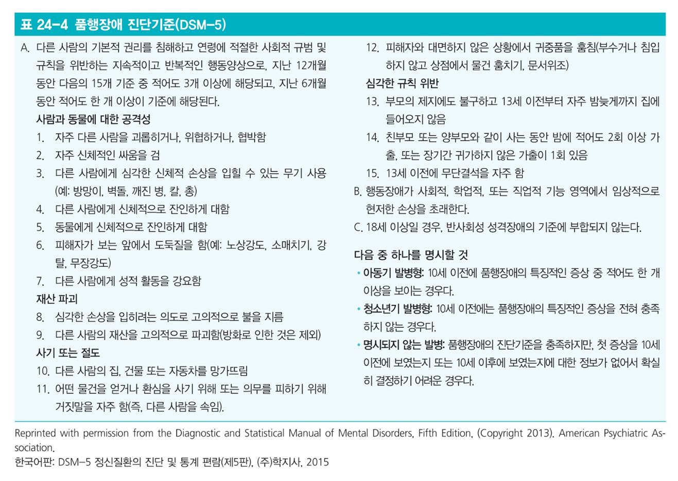 – 다른 사람의 기본 권리를 침해하고 나 이에 적합하지 않은 사회규범이나 규칙에 어긋나는 행동을 지속적이고 반복적으로 나타낸다.