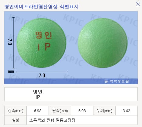 ![]() 명인아미트리프틸린염산염정 | ![]() 명세핀정 |