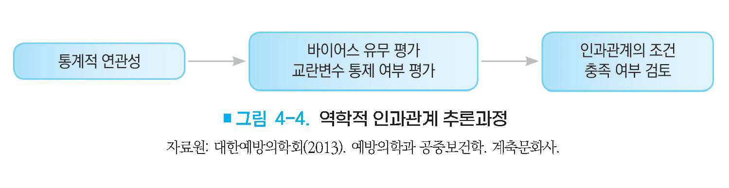 – 우연의 발생과 실재하는 인과관계를 구별하려면 확률에 근거를 두어 여러 번 반복된 관찰에서 동일한 관계가 성립되어야 하며(통계적 연관성), 이 들 중 일부만이 원인적 연관성을 가질 수 있다(그림 4-4).