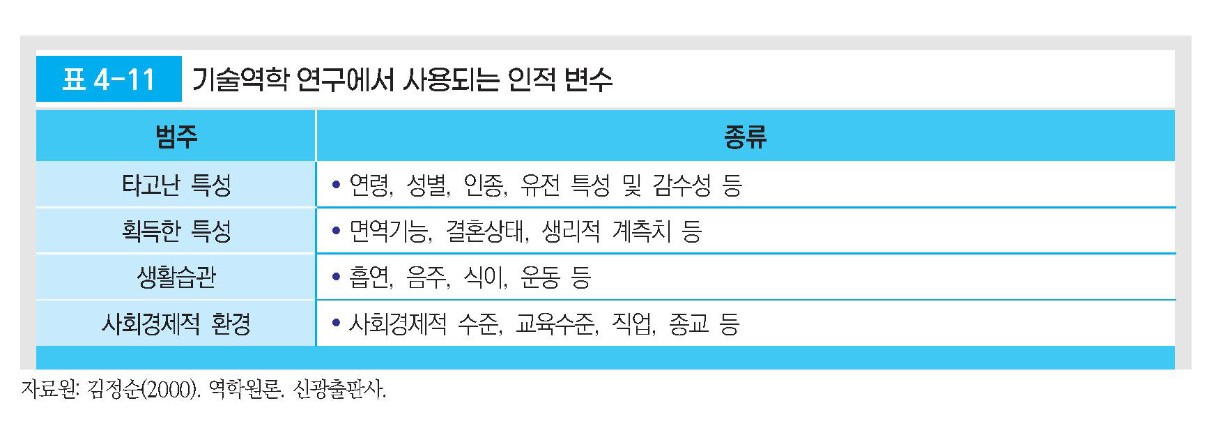 – 인적 특성 : 연령, 성별과 같이 변화가 불가능한 요인
