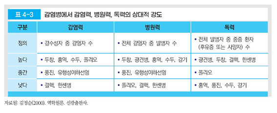– 치명률(fatality rate)이 높을수록 독력이 높음
