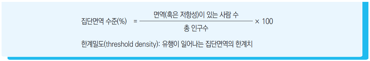 – 집단면역: 어느 특정 감염증에 대해서 집단구성원의 면역학적 반응을 측정함으로써 객관적으로 알 수 있는 어떤 집단의 면역상태