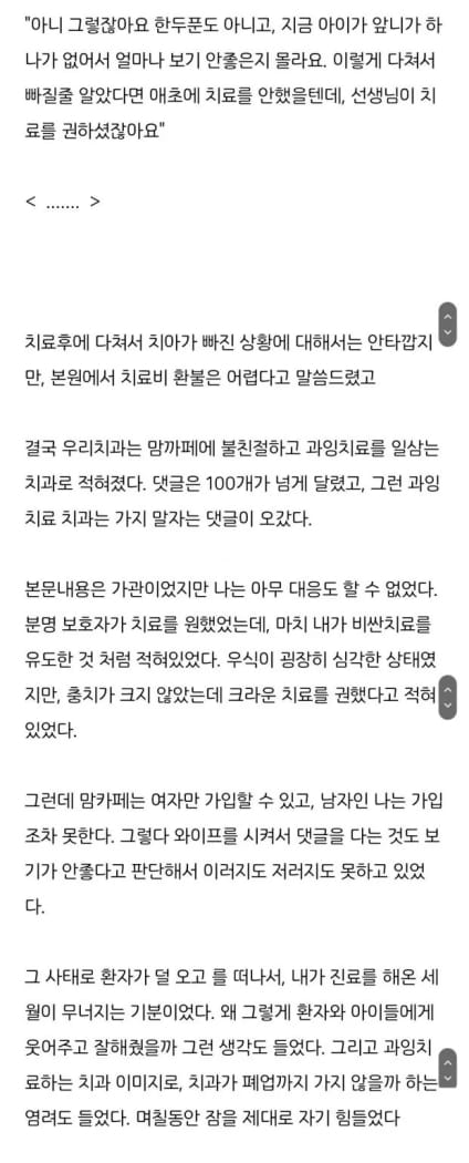 한 치과의사가 받은 컴플레인 (feat. 아이 아빠가 화가 많이 났어요) 차례 숨기기 한 치과의사가 받은 컴플레인 (feat. 아이 아빠가 화가 많이 났어요) 관련 미국의 사랑니 발치중환자실(ICU) 섬망(Delirium) 평가 완벽 가이드 (CAM-ICU · ICDSC)MRWARE NursingSkill 사이트 주소 (핵심간호술기 실감형 실습)(여성간호학) 임신성 당뇨(여성간호학) 고혈압성 건강문제 01 임신성 고혈압(간호관리학) 간호단위관리 03 의약품관리 Post Views: 268관련태그:아이 아빠가 화가 많이 났어요치과 맘카페치과 컴플레인한 치과의사가 받은 컴플레인한 치과의사가 받은 컴플레인 (feat. 아이 아빠가 화가 많이 났어요)이전요즘 10대에게 나타나는 병 (게임 NPC 취급)다음뇌손상 심한 사람들의 습관