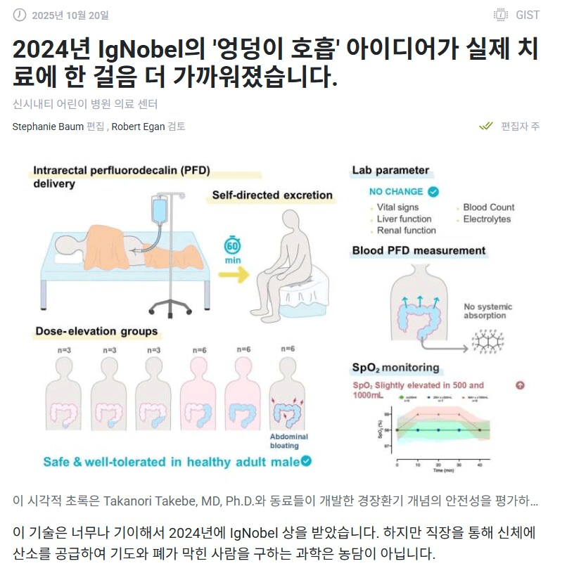 - 항문호흡이 다시 한 번 임상실험으로 증명되다 (2024 이그노벨상 수상)