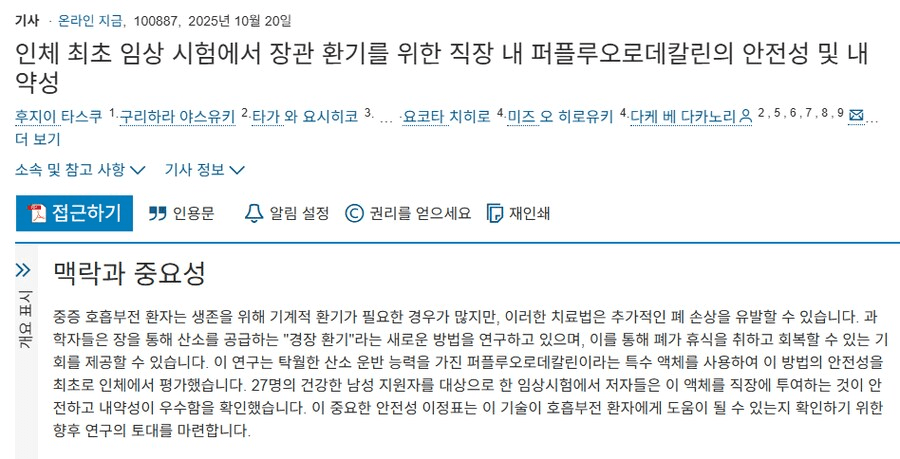 코로나 시기 당시에 호흡기 질환으로 인한 대체 호흡법을 연구하던 일본 과학자들이