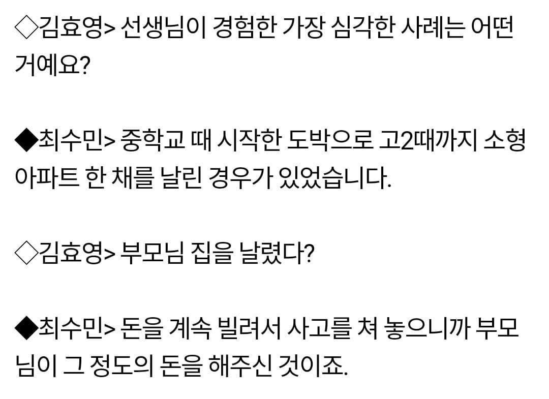 8개월 만에 3억을 날린 고등학생 (도박중독) 차례 숨기기 8개월 만에 3억을 날린 고등학생 (도박중독) 관련 1차원적 쾌락 중독이 위험한 이유8개월 만에 3억을 날린 고등학생 (도박중독)현재 전쟁여파로 얼마에 팔아도 좋으니 배송시작만 되기를 바란다는 물건19세기 흑인들만 걸렸던 정신병(아동간호학) 내분비장애깃랩 창업자가 AI의 도움을 받아 스스로 암백신을 만들다 Post Views: 17관련태그:8개월 만에 3억을 날린 고등학생8개월 만에 3억을 날린 고등학생 (도박중독)도박중독이전현재 전쟁여파로 얼마에 팔아도 좋으니 배송시작만 되기를 바란다는 물건